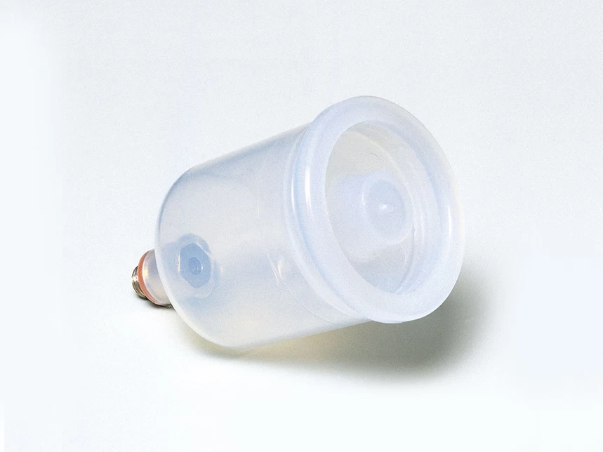 Resin-made paint cup. Capacity is 17cc. It can be attached to any Tamiya air brush from the HG series.