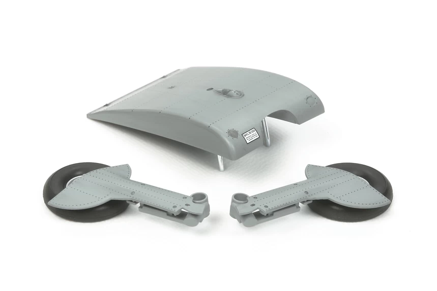 Photo-etched parts to depict details such as wheel covers, cockpit area including instrument panel and seat belts with or without pilot included. 1 seated and 1 standing pilot figures are included