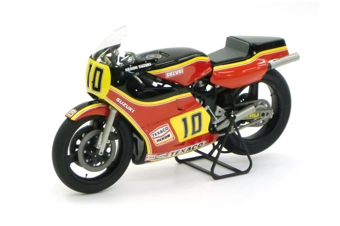 Suzuki”s challenge to world motorcycle competition started in 1960, and they were very successful with their 50cc and 125cc bikes; however, in 1967 they pulled out of competition at the Grand Prix level, but remained active and successful in world motocross competition. In 1974, Suzuki rejoined the Grand Prix circuit with an eye to winning the 500cc competition, but the next two years were not as successful as they would have liked; however, the Suzuki Motor Co. was not dismayed and continued developing and testing new ideas and concepts, knowing that all would shortly come together with a big win. In 1976, they won both the manufacturer”s trophy and the rider”s trophy due to the excellent driving of Barry Sheene. Since then, Suzuki has been in the forefront of 500cc competition at the Grand Prix level winning both trophies again in 1977, and the manufacturer”s trophy each year from 1976 to 1980. During these victory years, Suzuki has been continuously developing and improving their bikes.