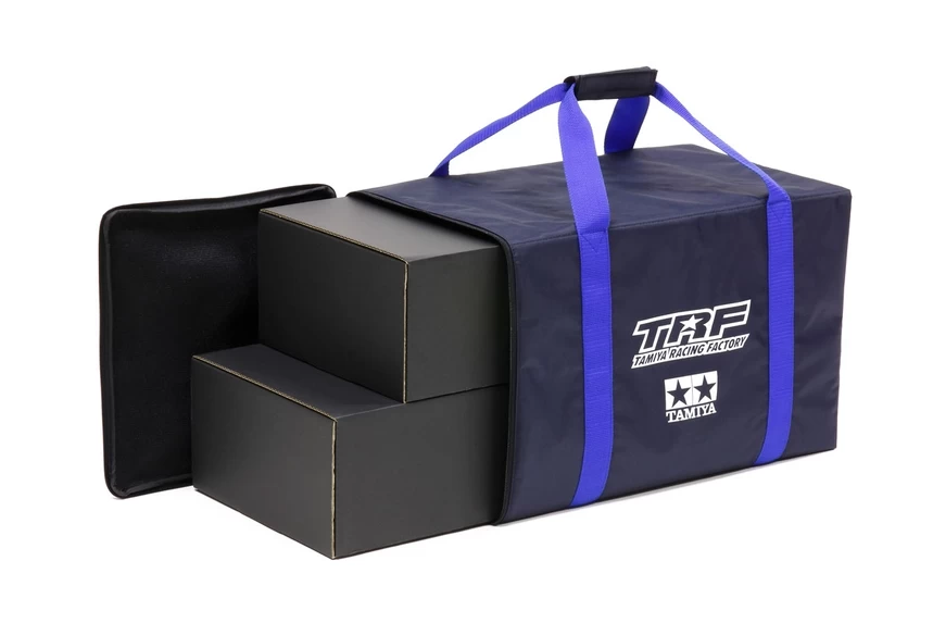 This is a nylon canvas pit bag. It uses 2-inner boxes to easily house Tamiya 1/10 scale off-road buggies and touring cars. It is also perfect for carrying your charger, batteries and any spare parts you may want to take to the track for a casual day of racing.