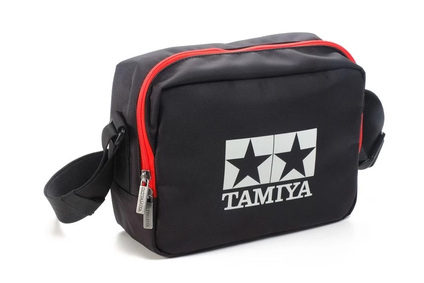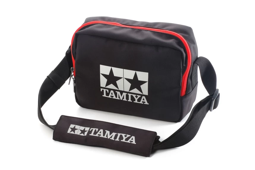This is a shoulder case with the Tamiya logo prominently displayed on its side. It is the perfect size in which to fit your Mini 4WD parts case, making it a breeze to carry around your things at Mini 4WD events.