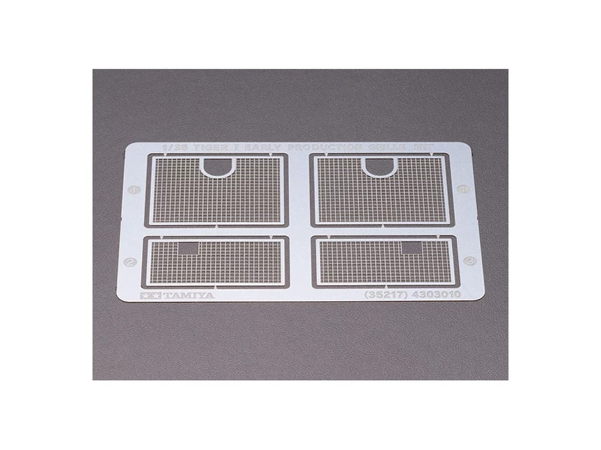 Compared with the Mid and Late Production German Tiger I heavy tank, the Early Production model featured subtle layout differences to its engine room. ★This Photo-Etched Grille set will add greater realism to your model highlighting the upper surface of the engine room. ★Set includes four square shaped pieces to the depict bullet proof grilles for the air cooling ducts and vents.
