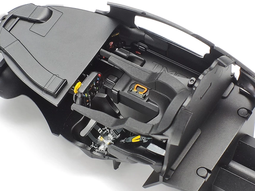 • The form of the 2018 version of the TS050 Hybrid is captured with superb accuracy: updated aerodynamics components (both exterior and interior), longer front fenders, and tweaked diffuser design.
