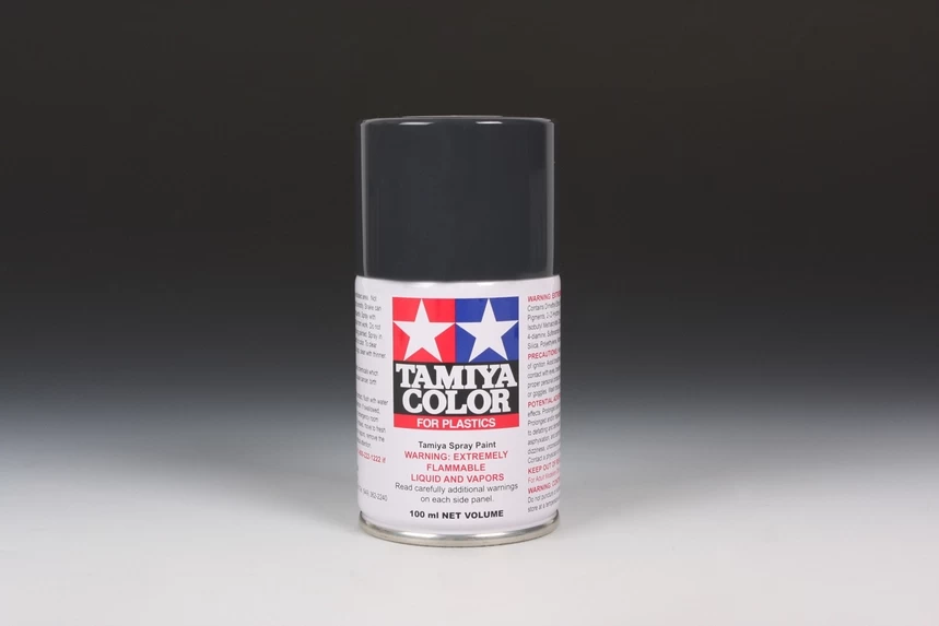 Tamiya TS spray paint is a synthetic lacquer that cures in a short period of time. The spray paint is extremely useful for painting large model surfaces. Tamiya spray paints are not affected by acrylic or enamel paints. Therefore, following the painting of the entire assembly, details can be added or picked out using enamel and/or acrylic paints.