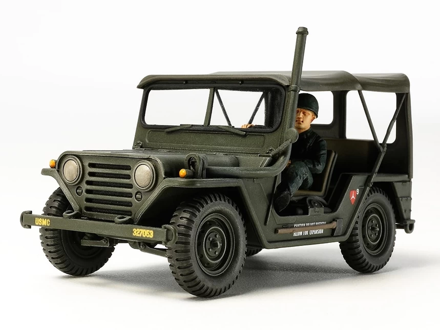 This is a 1/35 scale plastic model assembly kit of the M151A1. ★Length: 98mm, Width: 48mm. ★The form of the M151A1 with added turn signals and rear suspension modifications is accurately captured. ★Modelers can choose to recreate this versatile vehicle with U.S. Marine Corps or U.S. Army specifications. ★The model depicts the A1 with deployed hood. ★Comes with a driver figure and 2 sets of marking options included.